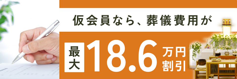 葬儀に関してお急ぎの方がご利用いただける、仮会員登録がございます。会員登録や入会金のお支払いをいただく時間がない場合は、葬儀/家族葬のご依頼前に仮会員登録を行っていただくことで会員価格でのご葬儀が可能です。